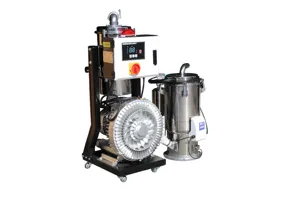 Вакуумный загрузчик полимерного сырья эксплуатируется совместно з различными видами устройств и чаще всего включен в комплектацию термопластавтоматов и пленочных экструдеров. Он использует вакуум для создания давления, что обеспечить всасывание сыпучих материалов и их перемещение до необходимого пункта. Использование пневмозагрузчиков акутально для достижения необходимой насыпной плотности материалов, что позволит повысить производительность основной машины. Кроме того, при стабильной подаче сырья в необходимом количестве будут обеспечены условия для изготовления качественной продукции. К другим преимуществам эксплуатации вакуумных загрузчиков относятся следующим: