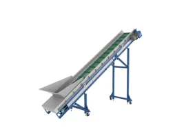 ⚡ Транспортер с желобами полезен при сортировке отходов и их перемещении в цех переработки.